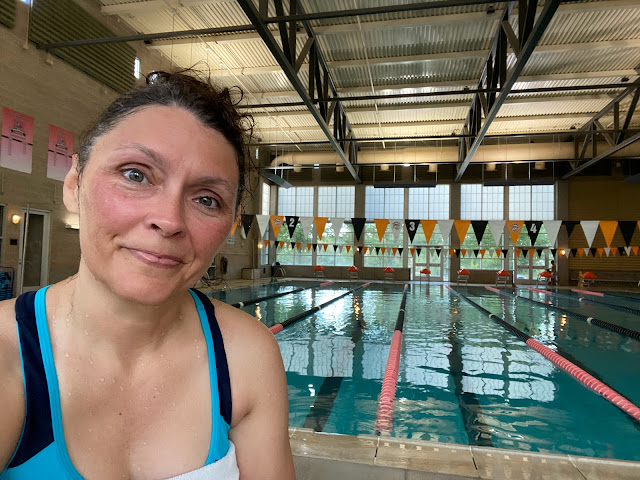 I still have work to do--lots of stops at the end of each lap to catch my breath and I need to decrease my drag between breaths.